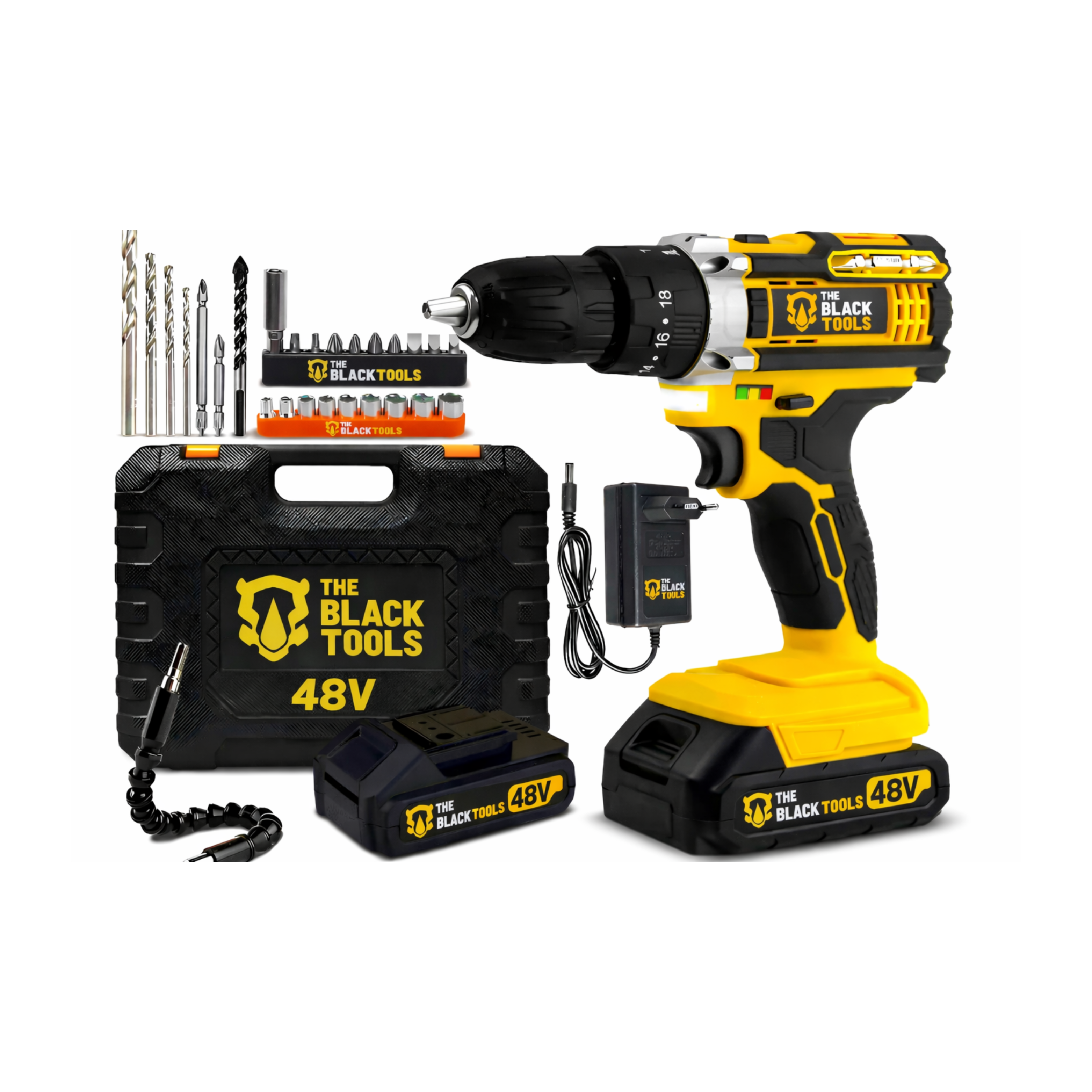 Parafusadeira e Furadeira de Impacto The Black Tools 48v - 2 Baterias + Maleta